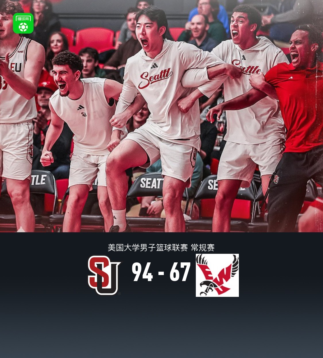 北京时间11月13日,NCAA比赛,西雅图大学94-67大胜东华盛顿大学。