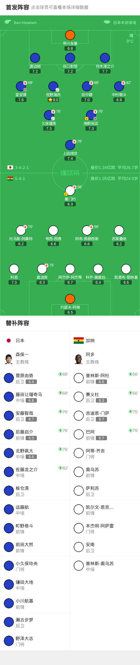北京时间11月14日麒麟挑战杯 赛事,日本对阵加纳。日本南野拓实破门,堂安律破门。最终比分日本 20 加纳。