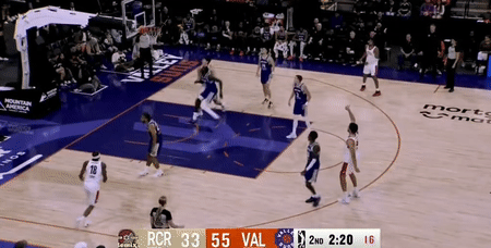 北京时间11月15日,杨瀚森G联赛首秀,第二节还有两分钟左右,杨瀚森抢下前场篮板后,背身单打马鲁阿奇,随后转身上篮打进。