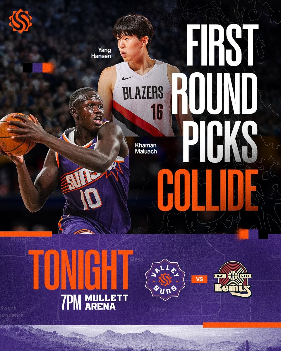 随后,山谷太阳队发布比赛预热海报,海报人物为马鲁阿奇与杨瀚森,山谷太阳官方表示,这是一场首轮秀的对决。