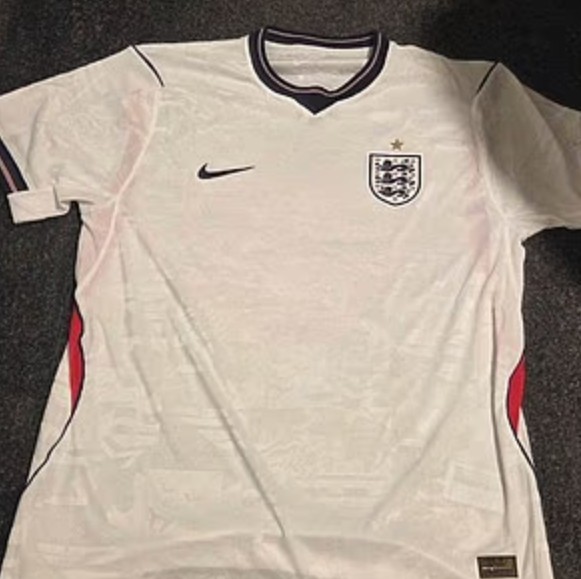 最近泄露的英格兰新球衣图像显示,这款球衣将于3月的国际比赛前发布。球衣设计上,领口内印有“Happy and Glorious”(快乐与荣耀)的口号,三狮队徽上方还有一颗金星,以纪念1966年世界杯的胜利。球衣采用了耐克的Aero Fit技术,旨在帮助球员们适应美国、加拿大和墨西哥高温的比赛环境,预计气温可能超过30°C。