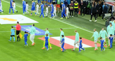 双方球员步入球场,比赛即将打响