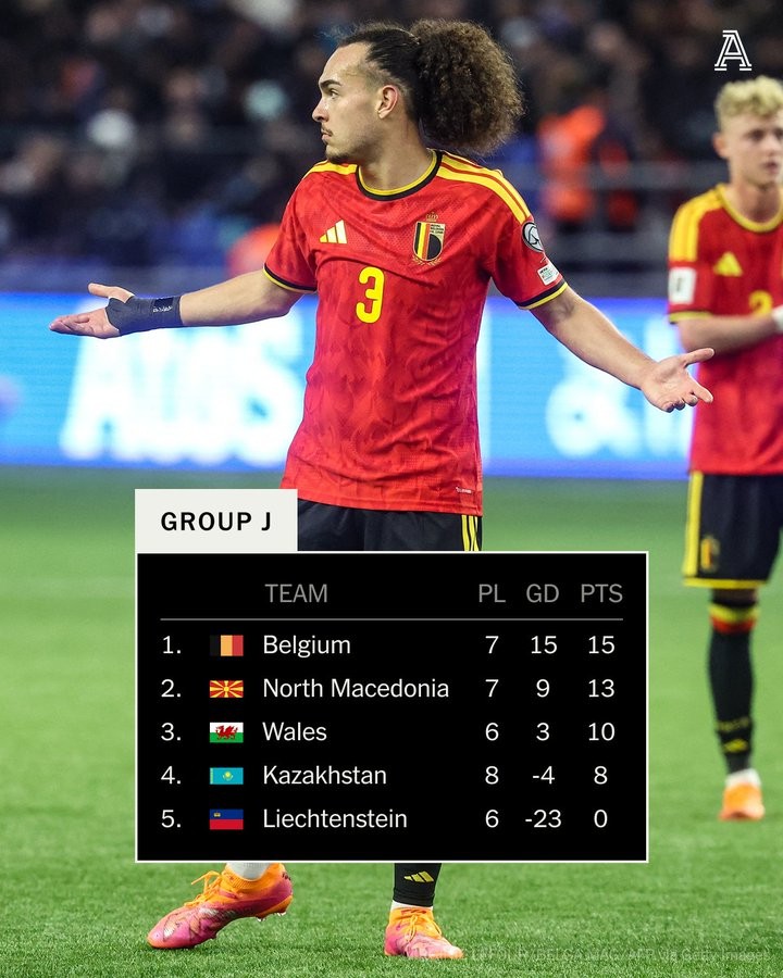 目前在世预赛欧洲区J组中,比利时4胜3平积15分排名榜首,净胜球为+15,北马其顿3胜4平13分第二,净胜球+9,本轮将客战弱旅列支敦士登的威尔士3胜1平2负积10分排名第三,净胜球+3。