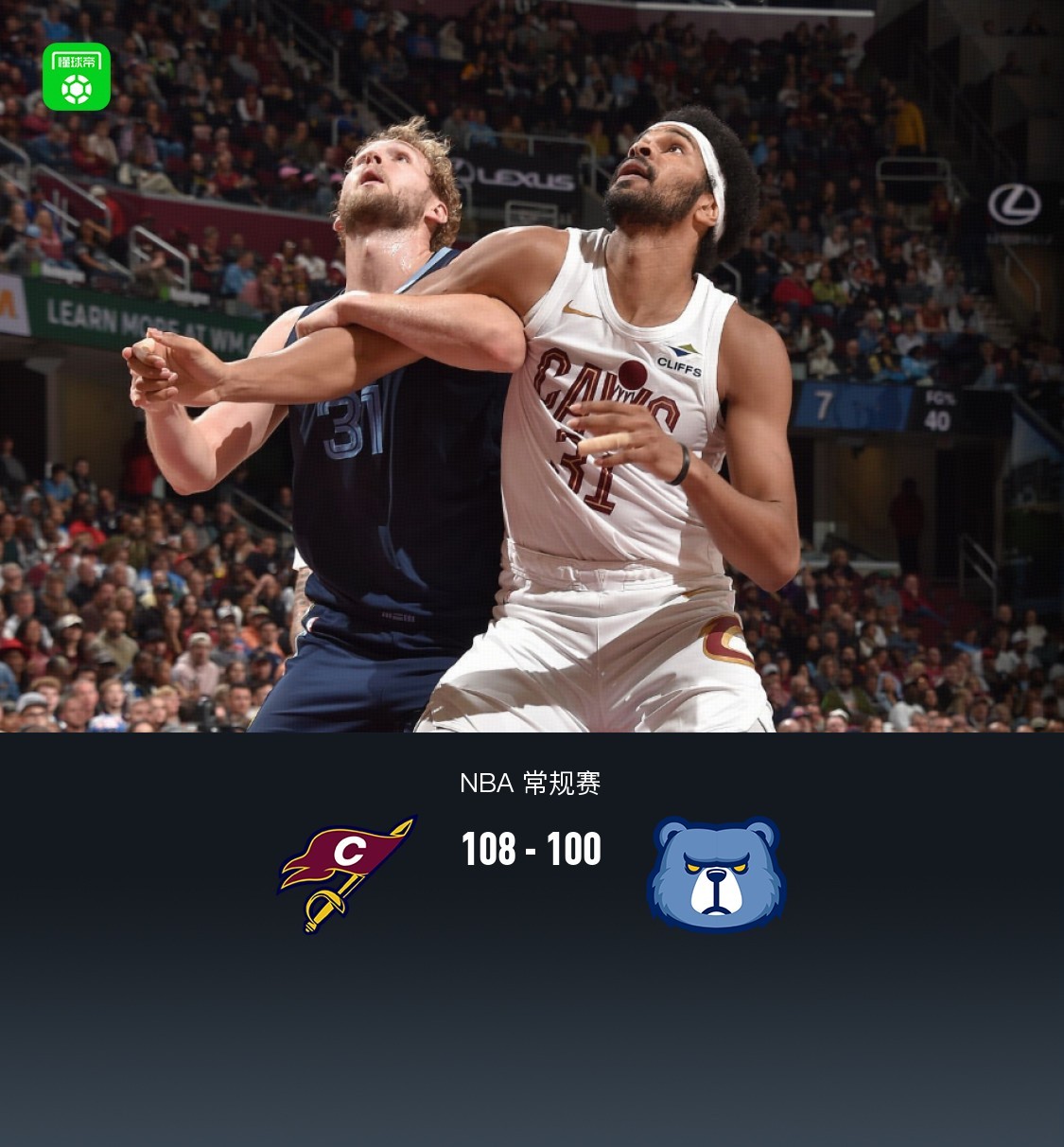 第四节骑士米切尔拿下14分,灰熊小贾伦-杰克逊拿下7分,最终骑士108-100战胜灰熊