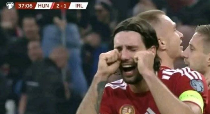但比赛第96分钟,爱尔兰前锋帕罗特上演帽子戏法完成绝杀,最终以3-2击败了匈牙利,淘汰对手挺进预选赛附加赛,之后,可以看到,索博斯洛伊坐在球场上伤心落泪。