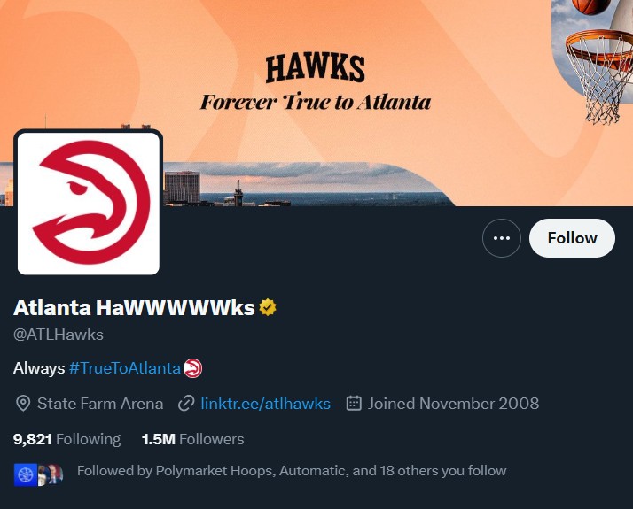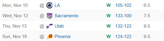 在过去四场比赛中,老鹰队完成了一次西部客场之旅,而他们也在这四场比赛中全身而退,分别击败了快船、国王、爵士和太阳。据统计,这是自老鹰队搬至东部以来,队史首次在西部四连客中全胜。有趣的是,老鹰队在自己的社媒主页的名字上,把Hawks中间的W写成了5个,代表球队目前的五连胜。