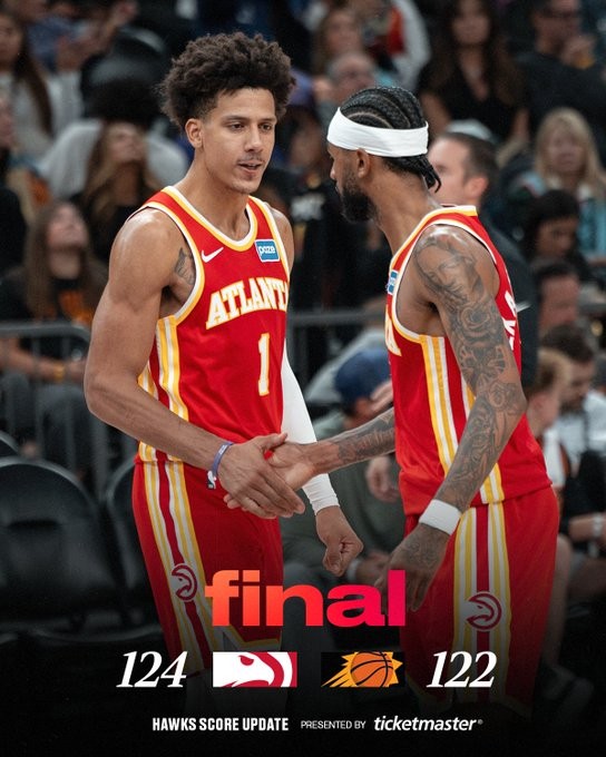 北京时间今日,在NBA常规赛中,亚特兰大老鹰队在客场以124-122击败了菲尼克斯太阳队,取得了五连胜。