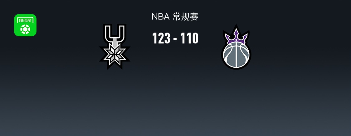 第四节马刺福克斯拿下12分,国王威斯布鲁克拿下6分,最终马刺123-110战胜国王