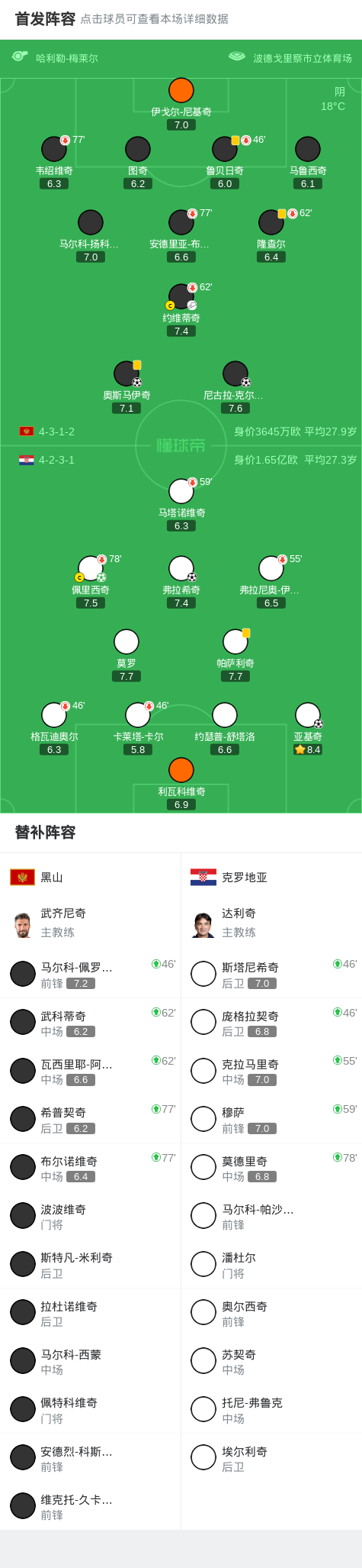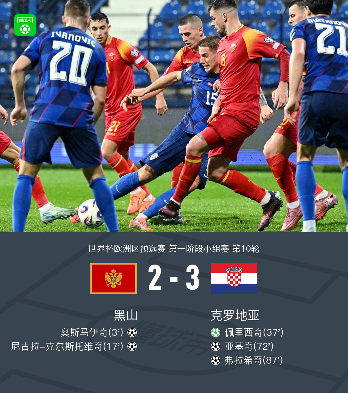 北京时间11月18日,2022年世界杯欧洲区预选赛第一阶段小组赛第10轮展开较量,黑山与克罗地亚展开激烈对决。比赛伊始,黑山率先打破僵局,奥斯马伊奇取得进球,为球队建立领先优势。随后,约维蒂奇送出助攻,尼古拉-克尔斯托维奇接球后破门得分,进一步扩大比分。克罗地亚随后展开反击,佩里西奇主罚点球命中,为球队扳回一城。下半场,亚基奇抓住机会打入一球,帮助克罗地亚将比分扳平。临近尾声,弗拉希奇完成关键进球,助力球队实现反超。最终,双方战罢,比分定格为2-3,克罗地亚逆转取胜。