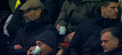 第9分钟,镜头给到场边,克洛普和马里奥-戈麦斯看台观战