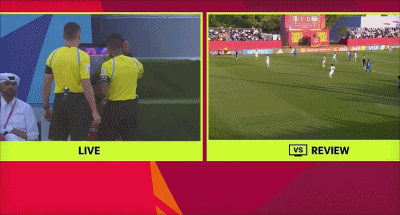 第23分钟,乌兹别克斯坦球员禁区内倒地,主裁判观看VAR后示意越位在先