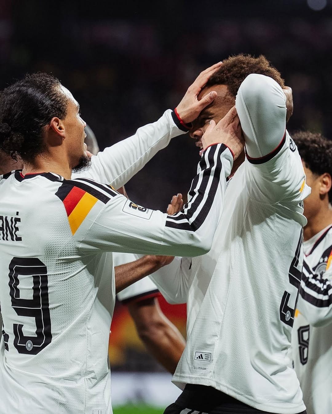 赛后,德国国脚萨内在社交媒体上晒图庆祝晋级世界杯,萨内写道:“团队表现太出色了!德国晋级2026年世界杯。”
