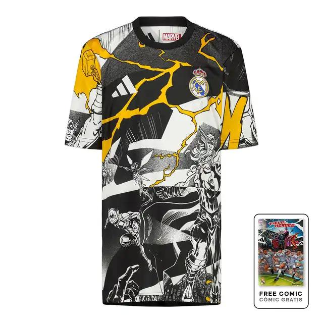 由阿迪达斯打造的皇马联名漫威服饰包含多个样式,售价从40欧元至110欧元不等。