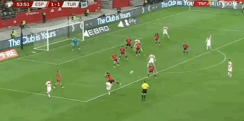 第54分钟,厄兹詹禁区外远射破门,土耳其2-1反超西班牙
