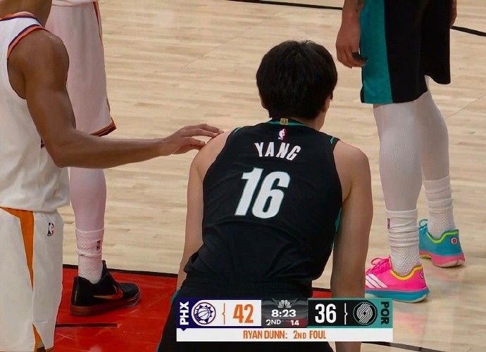 在本场比赛开始之前,中国球员杨瀚森被开拓者队从发展联盟召回,此前杨瀚森在两场发展联盟比赛中发挥出色。