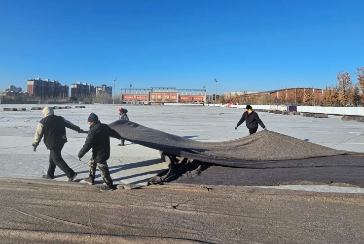 根据天气预报显示,长春下周将迎来大范围降温,基地草坪养护计划为天然草加盖一层黑色“棉被”,确保草坪能够得到保暖。