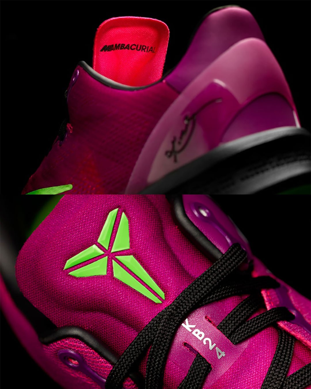 该鞋款配色的设计灵感来源于刺客Vapor足球鞋的设计元素,彰显科比对足球的热爱。