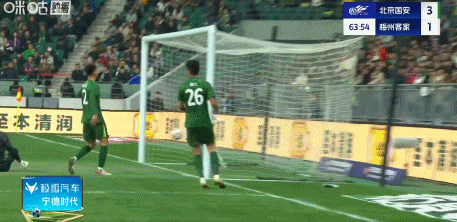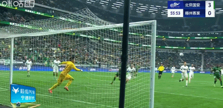 第56分钟,林良铭打门被扑,张玉宁补射得手,国安3-0!