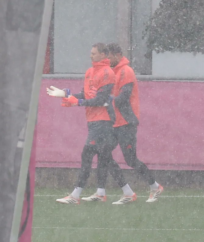 但现在拜仁球迷可以松一口气了——诺伊尔几乎可以肯定能上场了。当地时间周五下午1点54分,诺伊尔与其他门将一起出来参加了最后的封闭训练,这表明他的肠胃感染已经没有问题。