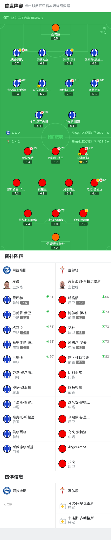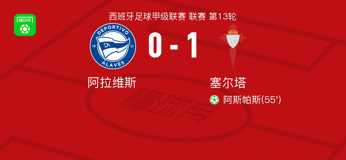 北京时间11月22日,西班牙足球甲级联赛第13轮,阿拉维斯坐镇主场迎战塞尔塔。比赛中,阿斯帕斯主罚点球命中,为客队打入制胜一球。凭借此次进攻,塞尔塔在客场以1比0战胜阿拉维斯。 点击查看本场比赛详细数据>> 点击查看西甲完整积分榜>> 精彩瞬间 第55分钟,塞尔塔球员阿斯帕斯罚入点球。 球队阵容 技术统计 文章导航 半场战报:乌迪内斯0-0博洛尼亚 拉莫斯:与河南续约因看到前景,休整两天后全力备战足协杯