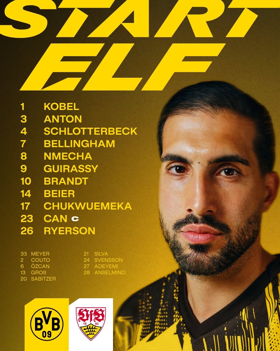 北京时间11月22日22点30分,德甲第11轮多特蒙德对阵斯图加特,赛前公布首发名单。