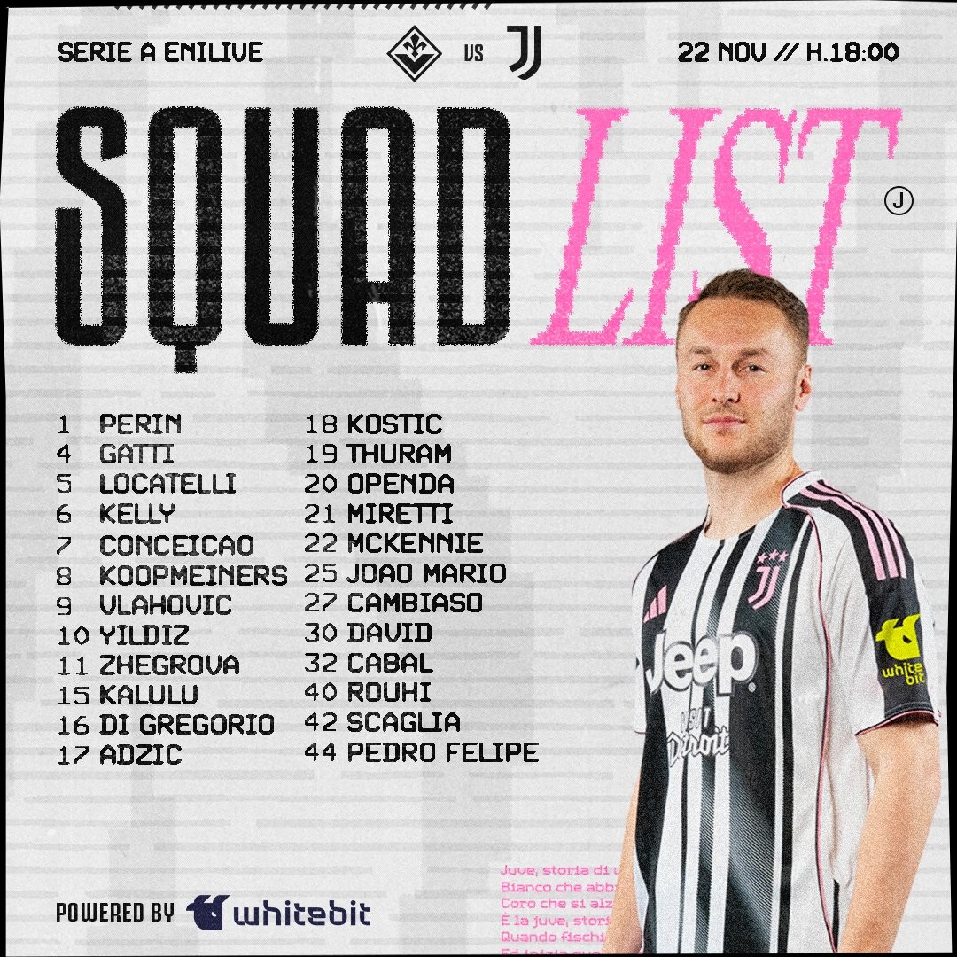 尤文图斯官方公布了意甲第12轮客场对阵佛罗伦萨的比赛大名单,伊尔迪兹领衔,劳埃德-凯利和卡瓦尔回归。