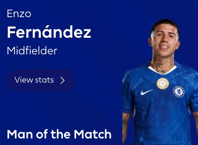 最终经过英超官网球迷投票,恩佐以39%的得票率力压佩德罗-内托(37%)当选全场最佳球员。