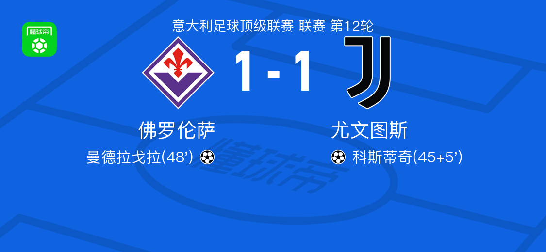 第48分钟,还一个,曼德拉戈拉世界波破旧主,佛罗伦萨1-1尤文