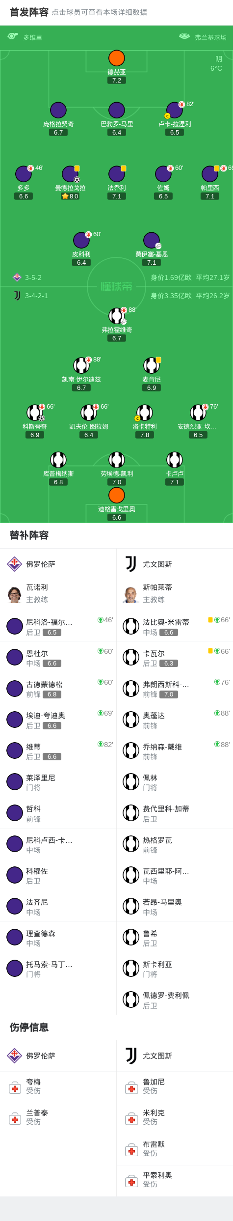 北京时间11月23日,意大利足球顶级联赛第12轮,佛罗伦萨主场迎战尤文图斯。上半场补时阶段,弗拉霍维奇送出助攻,科斯蒂奇破门得分。易边再战,莫伊塞-基恩完成助攻,曼德拉戈拉建功扳平比分。最终双方以1比1握手言和。