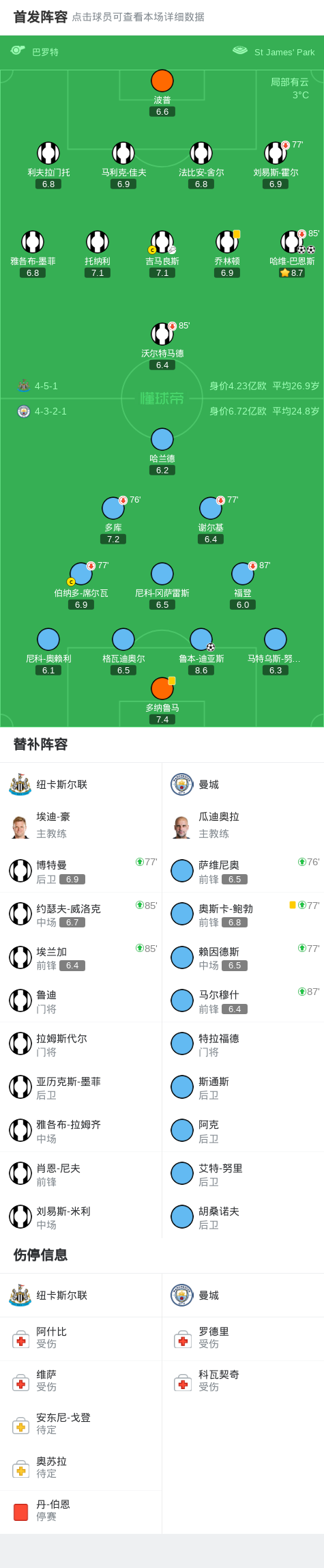 北京时间11月23日,英格兰足球超级联赛第12轮展开角逐,纽卡斯尔联坐镇主场迎战曼城。比赛中,吉马良斯送出精准助攻,帮助哈维-巴恩斯率先打破僵局。随后,鲁本-迪亚斯为曼城迅速扳平比分。不久之后,哈维-巴恩斯再度建功,完成梅开二度,助力球队重新取得领先。最终,纽卡斯尔联以2-1战胜曼城,全取三分。
