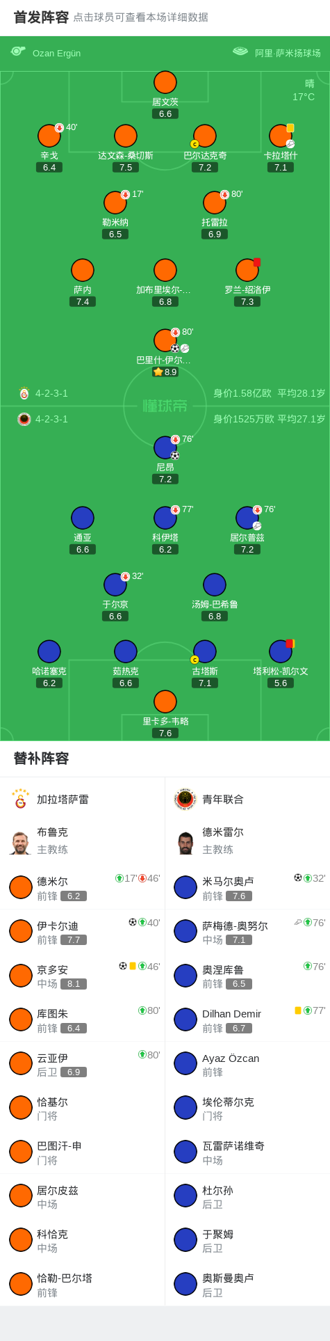 第66分钟,加拉塔萨雷球员巴里什-伊尔马兹助攻京多安打入一球。