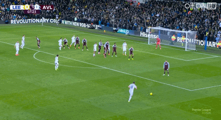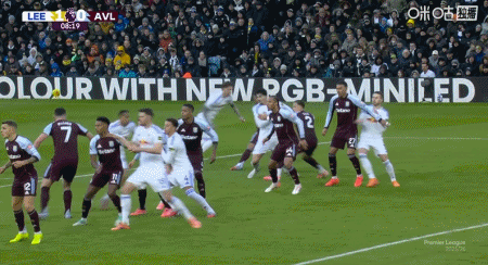 第8分钟,门前乱战,皮球打在恩梅加身上入网,利兹联1-0维拉