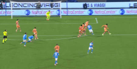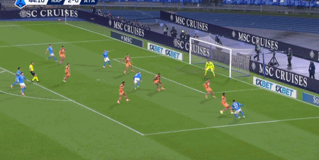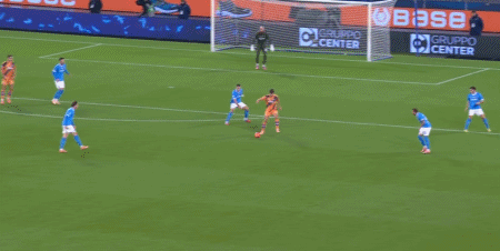 第45分钟,迪洛伦佐传中,诺阿-朗头球破门,那不勒斯3-0