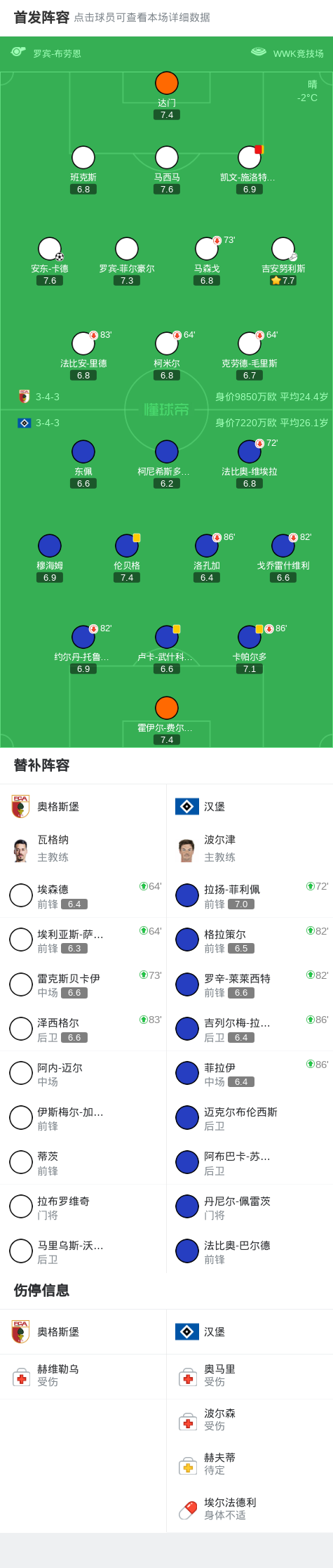 第76分钟,奥格斯堡球员吉安努利斯助攻安东-卡德打入一球。