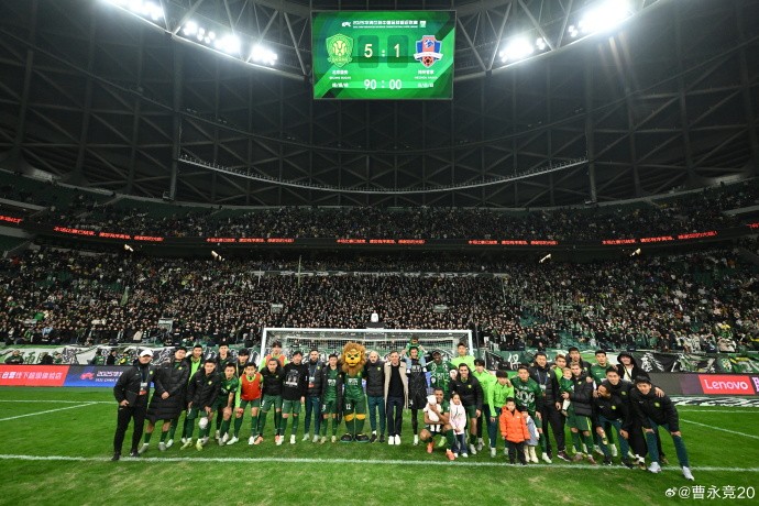 11月22日,在中超联赛最后一轮,北京国安5-1大胜梅州客家,赛后,曹永竞发文庆祝。