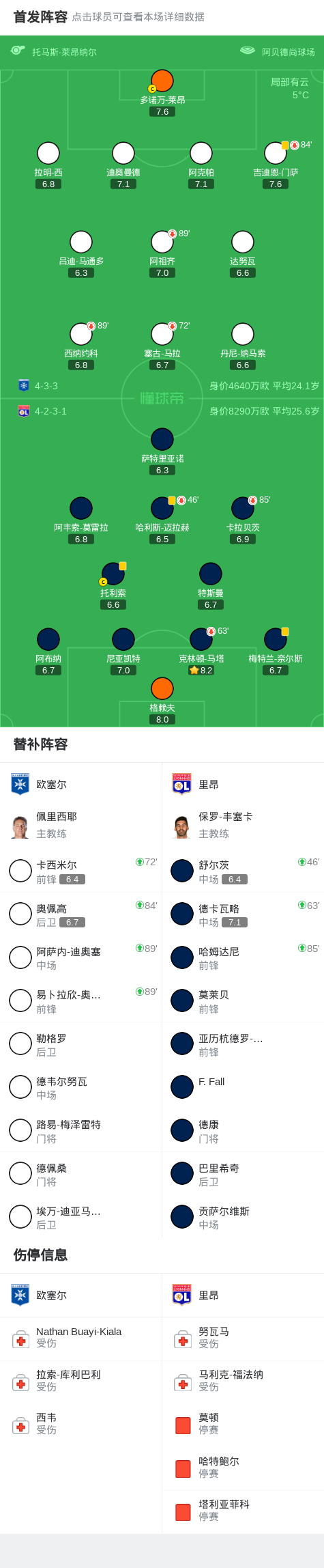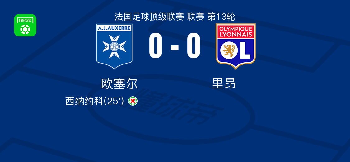 北京时间11月23日法国足球顶级联赛 联赛 第13轮,欧塞尔主场对阵里昂。最终比分欧塞尔 0–0 里昂。