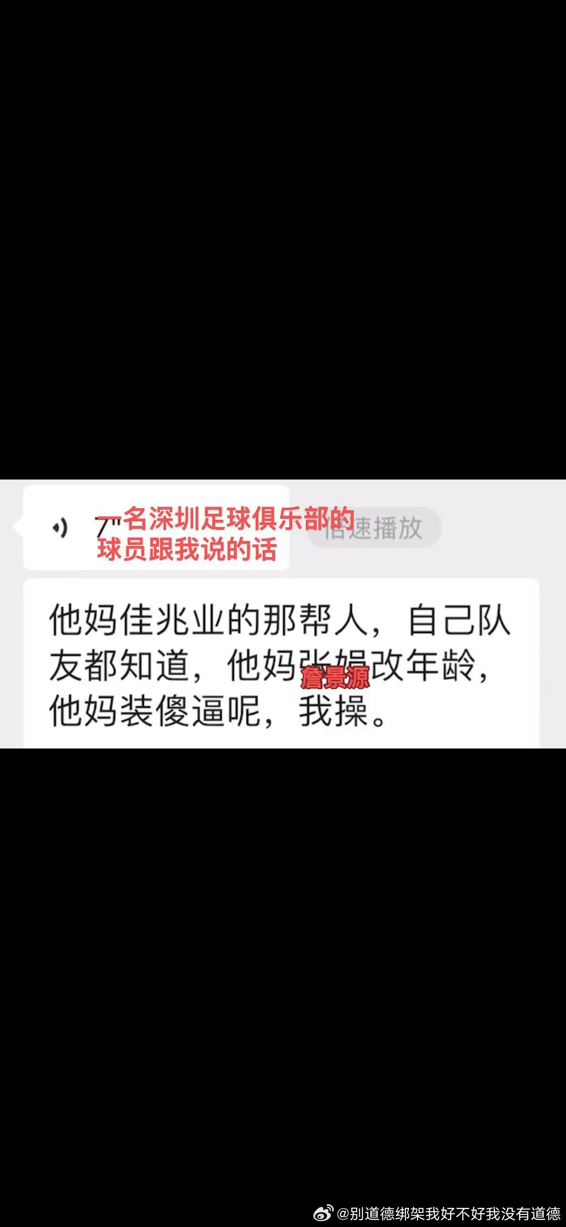 北京时间11月23日,微博用户“别道德绑架我好不好我没有道德”在微博发文,控诉中国U15球员詹景源参与聚众淫乱、欺骗感情、违背公序良俗等行为、改年龄,目前该事件并没有得到官方回应。