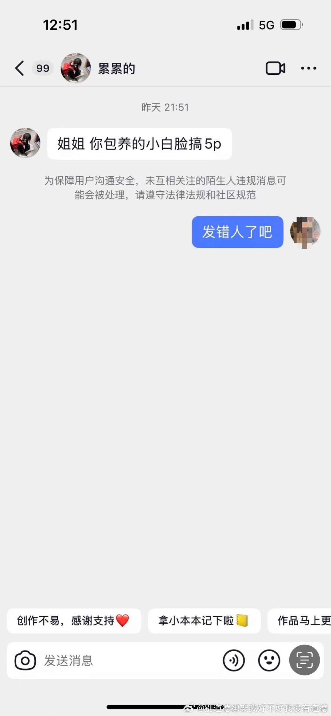 此外,詹景源曾向我及他人发表低俗、冒犯性言论(附聊天记录等证据),其行为既违背伦理道德,也涉嫌违法。