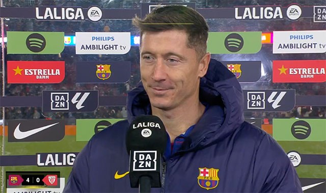 重返诺坎普首战,巴萨以4-0大胜毕尔巴鄂竞技,为球队首开记录的莱万赛后接受了DAZN的采访。