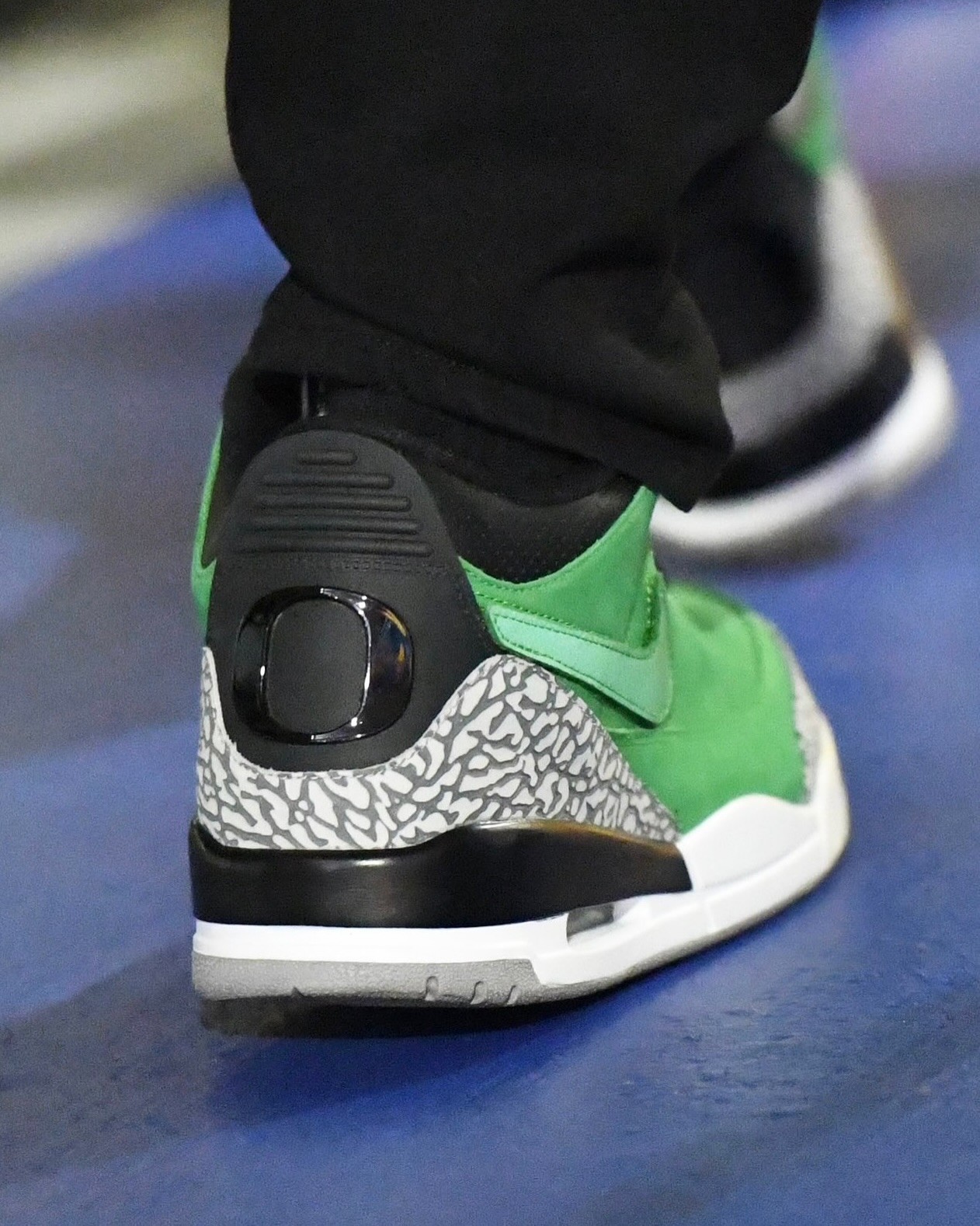据美国球鞋媒体soleretriever报道,库里在昨日入场时上脚了超级罕见的AJ3俄勒冈大学配色,而这双鞋是AJ为俄勒冈大学设计的专属款(NIKE总部位于俄勒冈州),仅为俄勒冈大学篮球队提供,发布后并没有进行市售。