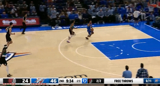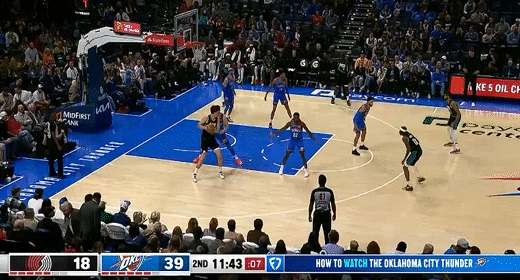 北京时间今日,在NBA常规赛中,波特兰开拓者队在客场对阵西部第一俄克拉荷马雷霆队。半场战罢,开拓者暂时46-67落后于雷霆。