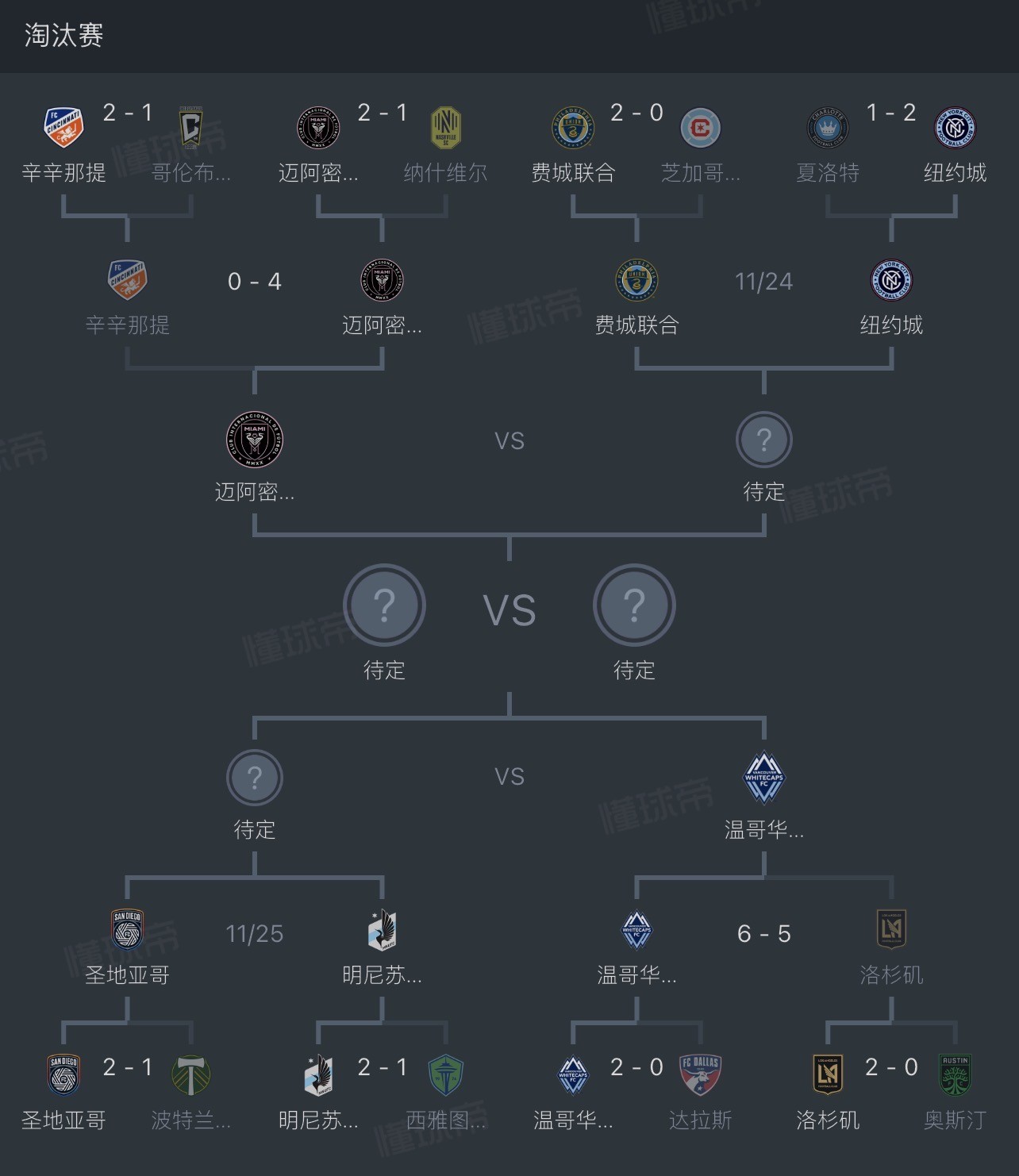 在西部赛区,穆勒领衔的温哥华白浪已率先晋级半决赛,另一名额将在圣地亚哥和明尼苏达联之间产生。