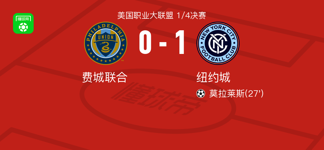 北京时间11月24日,美国职业大联盟季后赛1/4决赛展开较量,费城联合坐镇主场迎战纽约城。比赛中,尼古拉斯-费尔南德斯送出关键助攻,莫拉莱斯完成破门,为纽约城取得领先。凭借此次进球,纽约城在客场以1比0战胜费城联合,成功晋级下一轮。