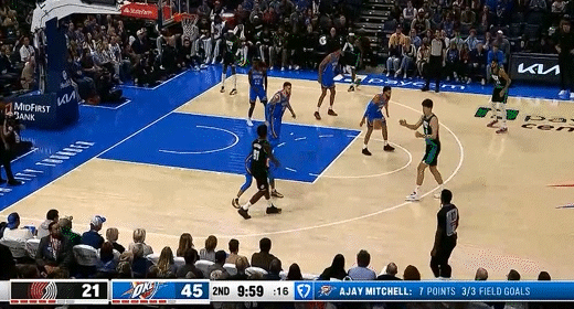 终于来了!杨瀚森对雷霆命中常规赛首记三分球