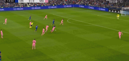 第74分钟,梅西直塞,阿连德再次单刀破门,迈阿密国际4-0