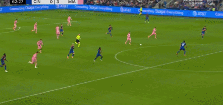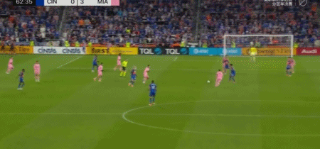 第62分钟,梅西斜塞,阿连德单刀破门再下一城,迈阿密国际3-0