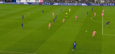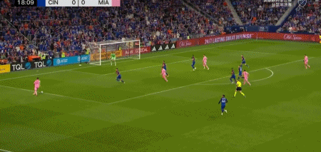 第19分钟,西尔维蒂禁区左路传中,梅西头球破门先拔头筹,迈阿密国际1-0
