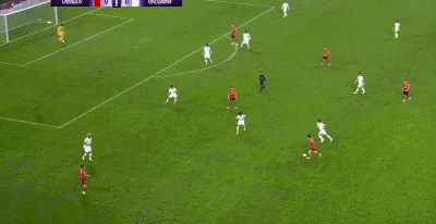 第33分钟,韦世豪带球突入禁区,最后传球被没收