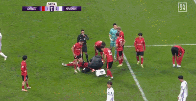 第60分钟,董岩鋒用头封堵对手射门,随后队医入场治疗