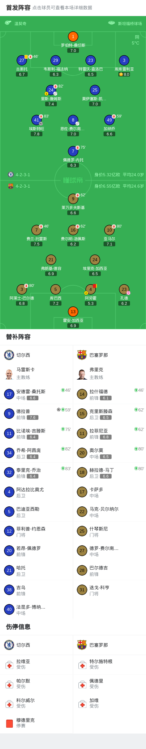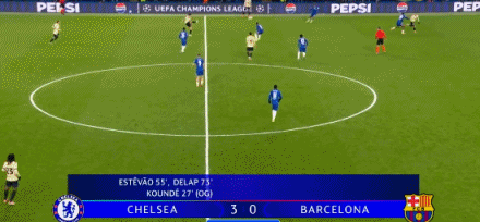 第55分钟,埃斯特旺右路连续过人抽射破门,切尔西2-0巴萨